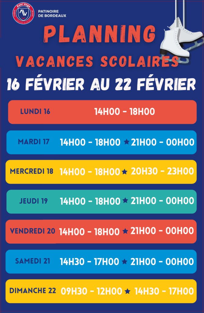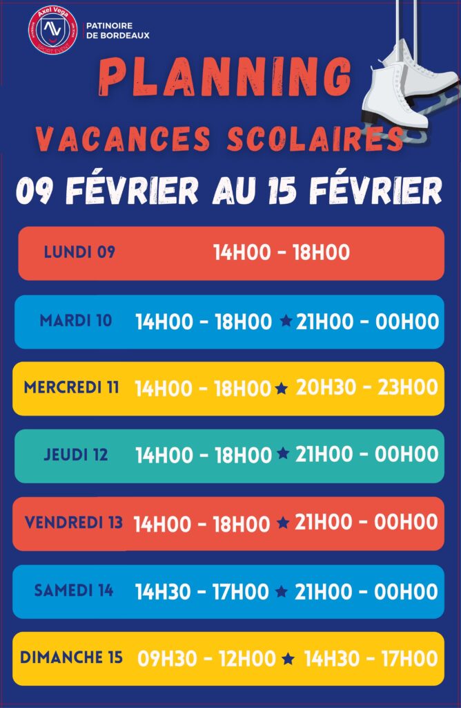 Planning séance publique Patinoire vacances de février - Axel Vega