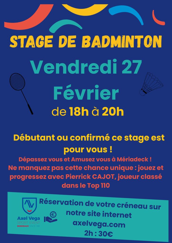 27 janvier 2026 Patinoire de Bordeaux Accueil > Actualités > Stage de badminton le 27 Février ! Rejoignez nous ! Stage de badminton le 27 Février ! Rejoignez nous !